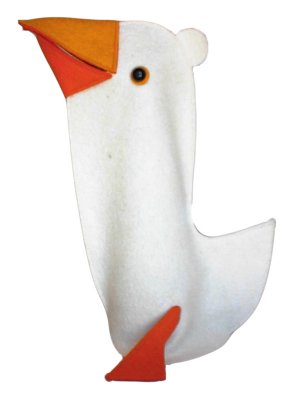 Magyarországon előállított, többnyire magyar alapanyagokból, kézi munkával készített, magas minőségű termék, mely kimondottan pedagógia módszertani szempontok alapján lett kialakítva. Felnőtt kézre méretezve, így kiválóan alkalmas az anyanyelvi vagy zenés foglalkozások színesítésére, kiegészítésére. A liba kesztyűbáb 25-30 cm nagyságú, egykezes, puha filc anyagból készült báb. Teste és feje fehér színű filc anyag, élénk narancssárga és citromsárga filc csőrrel és lábakkal. Szeme kis méretű, fekete gombszem. Testének kialakításának és színeinek köszönhetően hűen adja vissza az állat valódi vonásait.