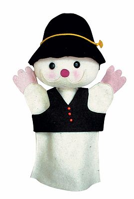 Magyarországon előállított, többnyire magyar alapanyagokból, kézi munkával készített, magas minőségű termék, mely kimondottan pedagógia módszertani szempontok alapján lett kialakítva. Felnőtt kézre méretezve, így kiválóan alkalmas az anyanyelvi vagy zenés foglalkozások színesítésére, kiegészítésére. A nagyapó kesztyűbáb 25-30 cm nagyságú, három ujjas, puha textil anyagból készült báb. Teste fehér színű és barna mellényt visel, apró gyöngy gombokkal. Arca rózsaszín plüss, kis fekete gombszemekkel és fehér filc bajusszal. Fején fekete filc sapkát hord, sárga színű zsinór díszítéssel. Orra sötét-, filc kezei és arcpírja világosrózsaszín.