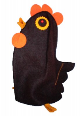 Magyarországon előállított, többnyire magyar alapanyagokból, kézi munkával készített, magas minőségű termék, mely kimondottan pedagógia módszertani szempontok alapján lett kialakítva. Felnőtt kézre méretezve, így kiválóan alkalmas az anyanyelvi vagy zenés foglalkozások színesítésére, kiegészítésére. A tyúk kesztyűbáb 25-30 cm nagyságú, három ujjas, puha filc anyagból készült báb. Teste és feje sötétbarna, apró csőre, taraja és lábai narancssárgák. Nagy szemei barnák, sárga napocskára emlékeztető alapon. Meseszerű kialakításának köszönhetően egy kedves szereplője lehet bármilyen foglalkozásnak.