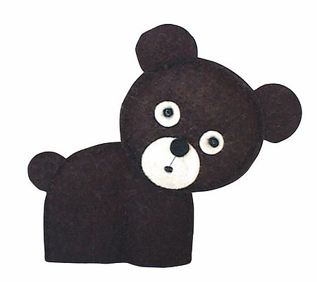 A mackó ujjbáb teste sötétbarna, pofija és szemei fehérek. Az ujjbábok mérete általánosságban kb. 12,5 cm.