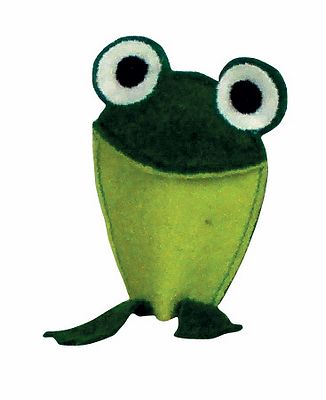 A béka ujjbáb teste virágos-, feje és lábai sötétzöldek. Kiemelkedő nagy szemei fehér alapon feketék. Az ujjbábok mérete általánosságban kb. 12,5 cm.