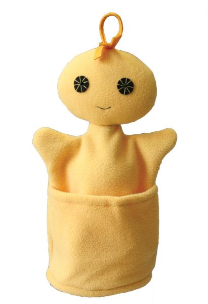 A gyermekek játékos módot tanulhatják meg a szelektív hulladékgyűjtés fontosságát és gyakorolhatják a szabályait. A babák színei és zsebes kialakításuk, illetve a bábhoz tartozó 5-5 hulladék korong miatt, könnyen elsajátítható mit hova kell kidobni. A báb puha textil anyagból készült, mérete 25-30 cm nagyságú, felnőtt kézre készült. Arcuk stilizált, a fej tetején kis akasztó segítségével könnyen felakasztható bárhova. A sárga szelektív baba a műanyagos hulladékgyűjtő konténernek felel meg.