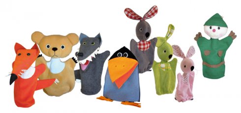 Tartalma: 8 db kesztyűbáb, 3 nyúl, varjú, róka, farkas, medve és vadász. 4 éves kortól.