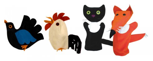 Tartalma: 4 db kesztyűbáb, rigó, cica, kakas és róka. 4 éves kortól.