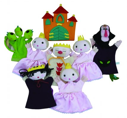 Tartalma: 8 db kesztyűbáb, boszi, öreg király, királyfi, 3 királylány, sárkány és kastély. 4 éves kortól.