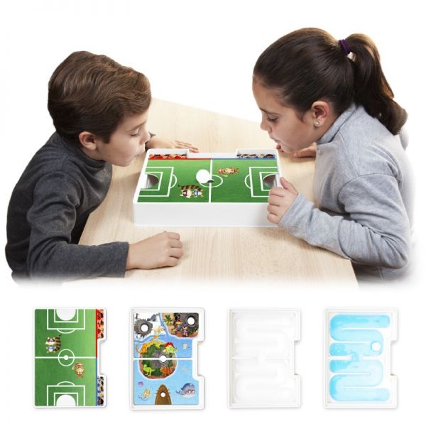 - A játék előkészítése: Töltse fel vízzel a játéktáblát, úgy, hogy a víz ne csorduljon ki a pályáról. Helyezze a labdát a pálya egyik végébe.