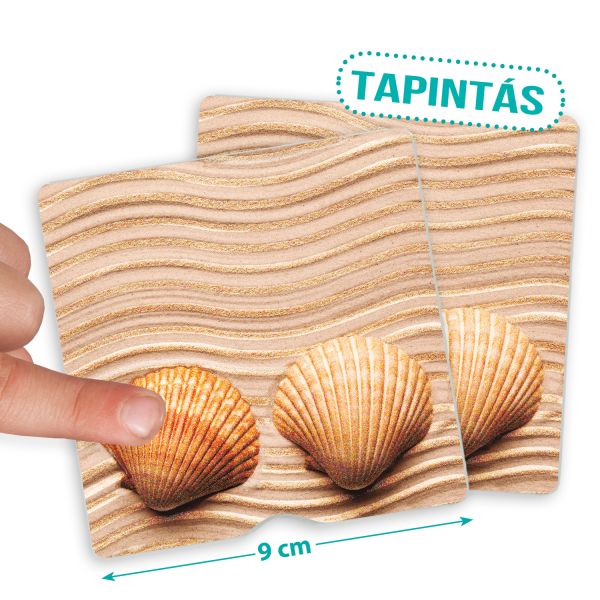 A 34 db kártya 17 féle textúrájú és tapintású felülettel rendelkezik. A gyerekek anyag felismerését segíti a változatosan összeállított doboz. Nehezíti a feladatot, hogy a mintákat bekötött szemmel kell összepárosítani, szétválogatni.