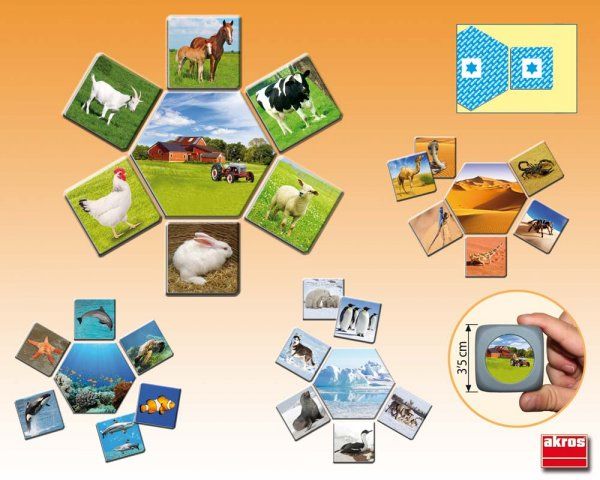 A játék segítségével a gyermekek megismerhetik azt, hogy egyes állatok milyen körülmények között élnek: a dzsungelben, a gazdaságban, a sivatagban, a tengerben és a sarkkörökön.