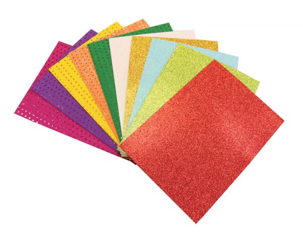 Dekorgumi csillogós lapok 10 db-os készlet, vegyes színekben, A4-es ALI 36700