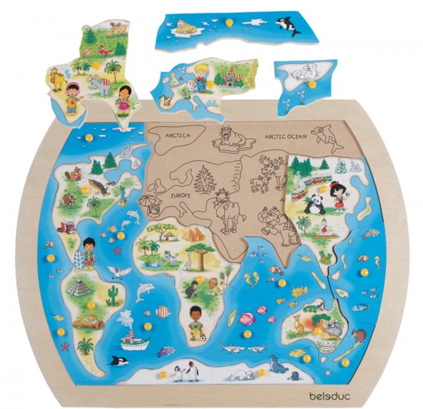 A kirakó bemutatja a kontinenseinket és óceánjainkat, mindezt kedves, játékos hangulatú illusztrációval. Az egyes Födrészeken az oda jellemző állatok, tárgyak és emberek képei láthatóak, ezzel is bemutatva, hogy milyen szép és változatos világban élünk.
