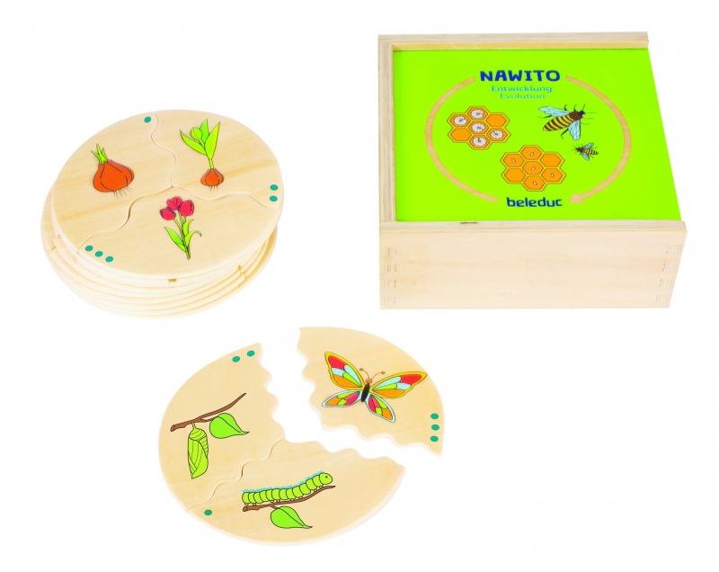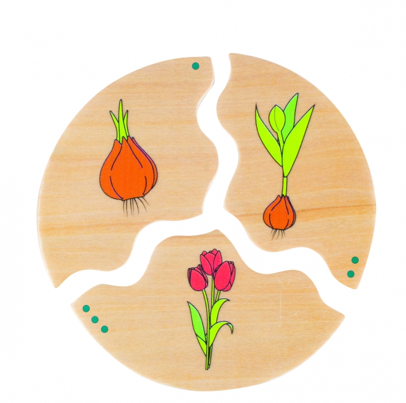 A fa puzzle segítségével a gyerekek megismerkednek a természetben előforduló különböző fejlődési szakaszokkal.