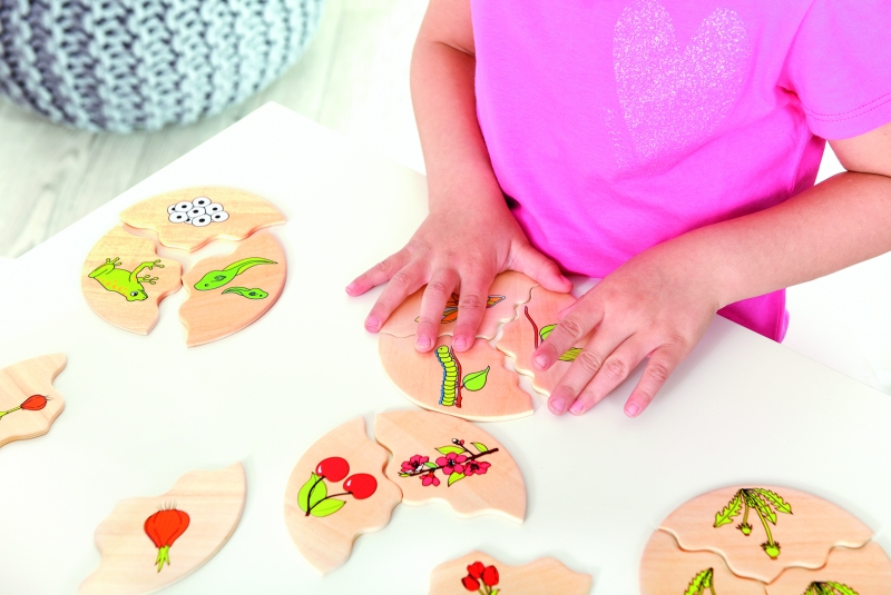A fa puzzle segítségével a gyerekek megismerkednek a természetben előforduló különböző fejlődési szakaszokkal