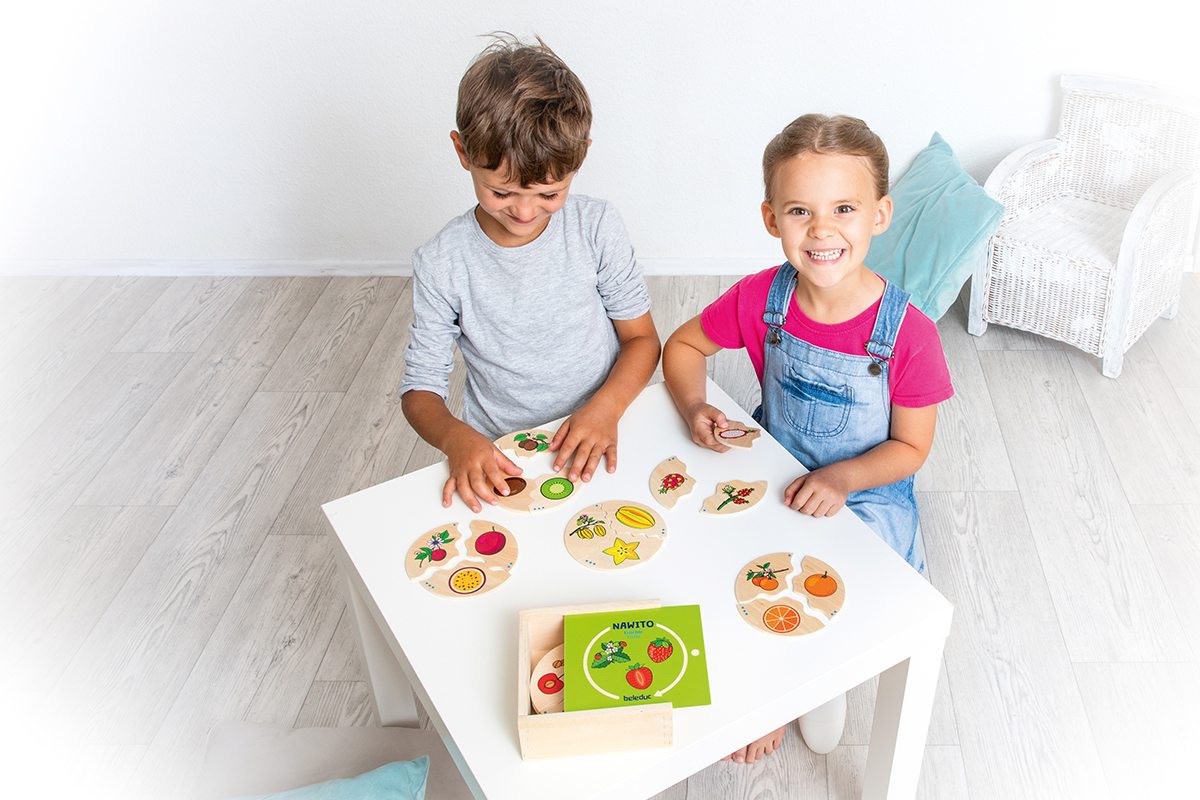 A rejtvény segítségével a gyerekek 10 különböző gyümölccsel ismerkednek meg.