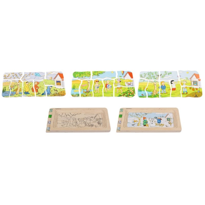 A puzzle képekkel, játék közben összehasonlíthatjuk az évszakokra jellemző időjárást, a megfelelő öltözködést és a szabadban végezhető tevékenységet is.