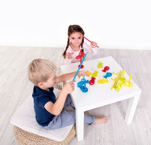 Emeljük fel a horgászbotunkkal az azonos színű halacskákat, és fűzzük rá a haltartó rúdra!