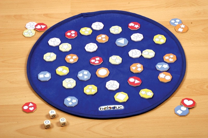 A játék kezdése előtt határozzuk meg, hogy mennyi lapocskát kell gyűjteni. Pl. aki elsőnek összegyűjt 5 lapocskát, megnyerte a játékot. A lapocskák a formák különböző variációit mutatják. Egyesek csak egyetlen formát, mások 2 vagy 3 különböző formát. Nos, a legfiatalabb játékos kezd és mindhárom kockával dob. A formáknak megfelelően meg kell keresni az azonos formákat ábrázoló lapocskákat. Ha a dobás 3 egyforma ábrát mutat, akkor azt a lapocskát keressük, melyen ez az egyetlen ábra van. Aki elsőnek megtalálta a lapocskát, megmutatja a többi játékosnak, és maga elé teszi. Ezután jön a következő játékos.