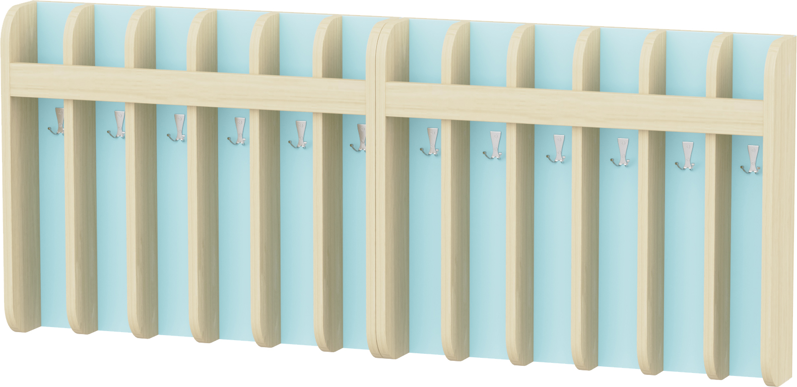 Az előírásoknak megfelelően fakkonkénti elválasztással, így biztosítva, hogy a törölközők nem érnek egymáshoz. A fakkok mindegyike 1-1 db kétágú akasztót tartalmaz, melyre a törölközőt és a nyeles kisfésűt is fel lehet akasztani. A felső fakkokba helyezhetőek a fogmosópoharak. Az ovisjelek is könnyen felhelyezhetőek az erre a részre kialakított díszlécre.