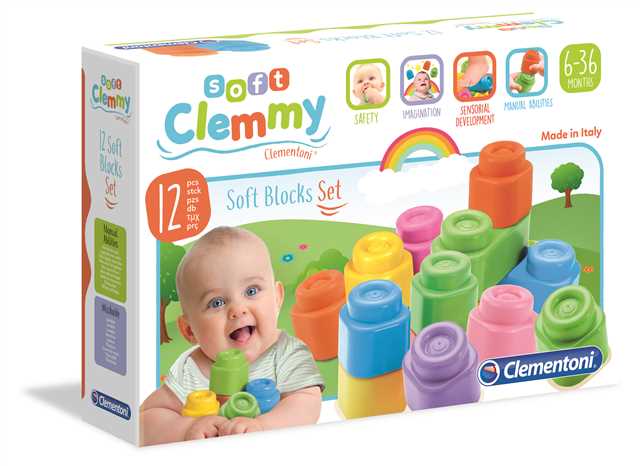 12 darab puha Baby Clemmy építőkockát tartalmaz a csomag.