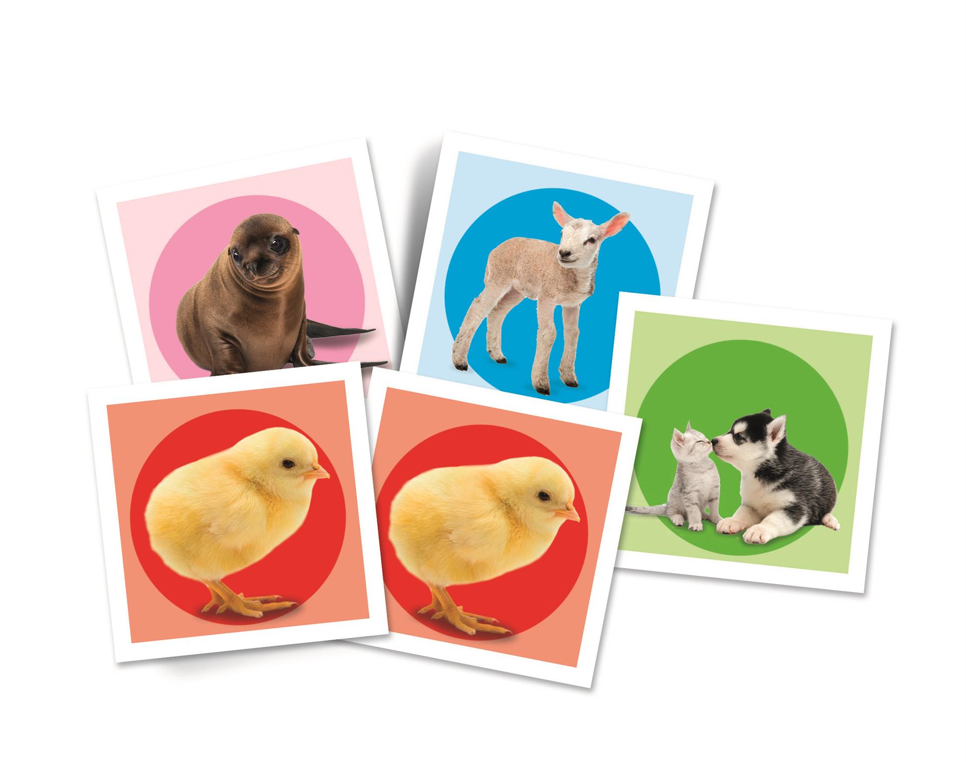 A Clementoni állatkölykös memóriajátéka 24 pár -48 db- kártyalapot tartalmaz, melyek mind kedves és aranyos állatkölyök képeket ábrázolnak.