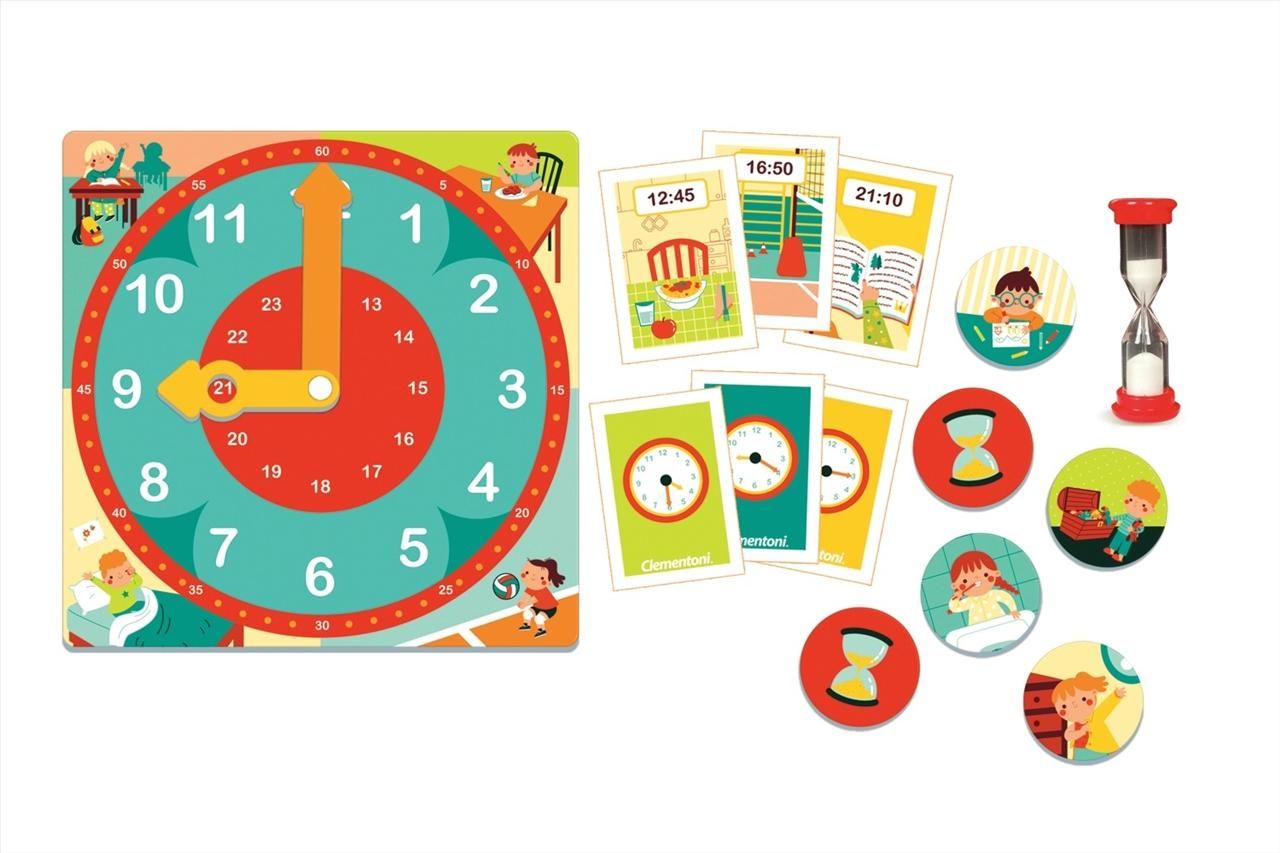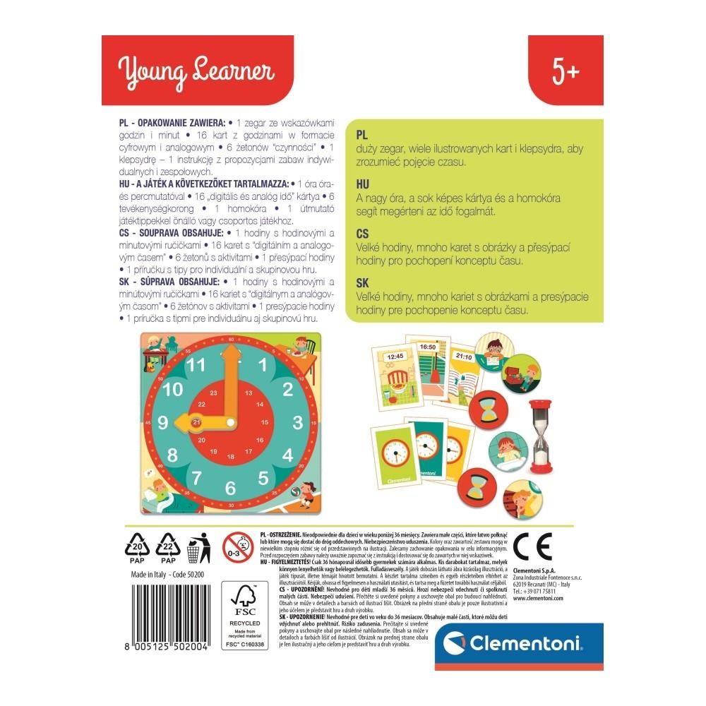 A dobozban egy nagy óra, sok illusztrált kép és egy homokóra is található, hogy egyszerű és szórakoztató módon tanulhassák meg csemetéink az idő fogalmát.