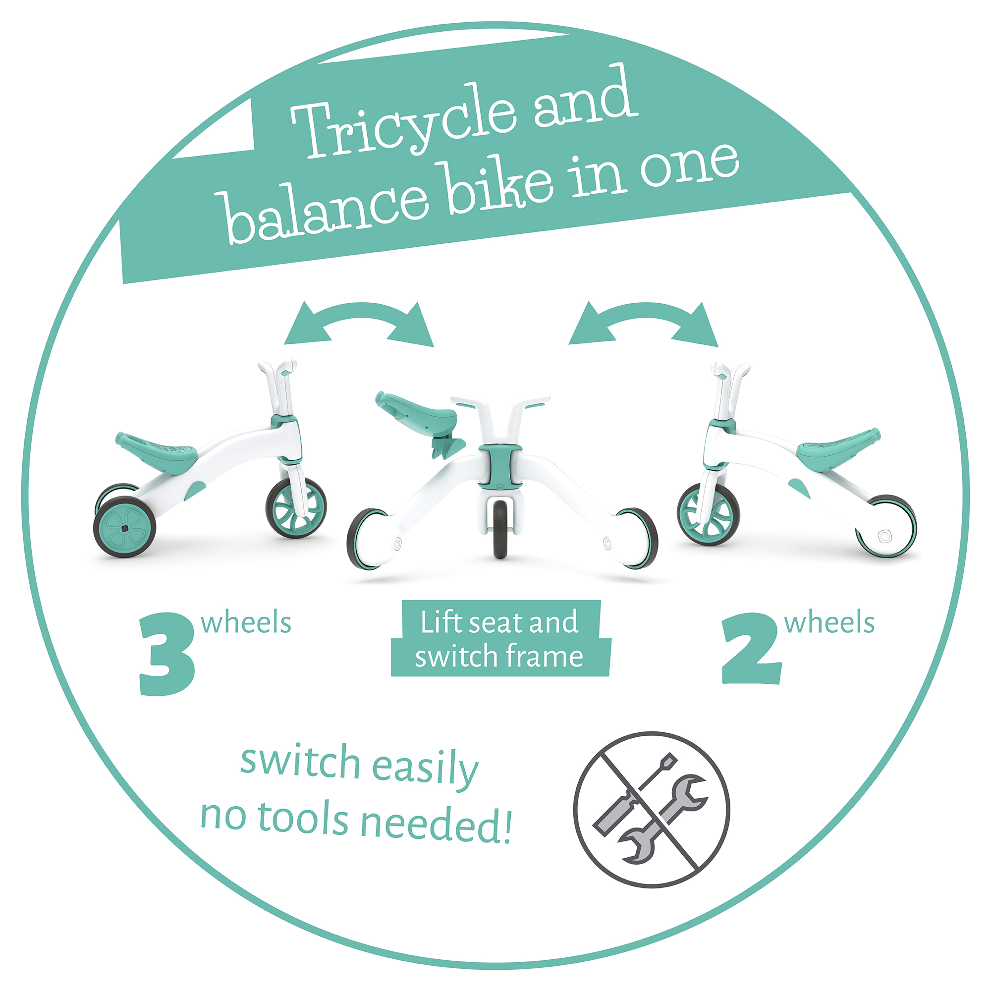 Amikor eljön az a pillanat, hogy már biztosan ülik meg a háromkerekű biciklit, akkor a Bunzi átalakulhat kétkerekű motorrá is! A kis jármű együtt nő a gyerkőcökkel!