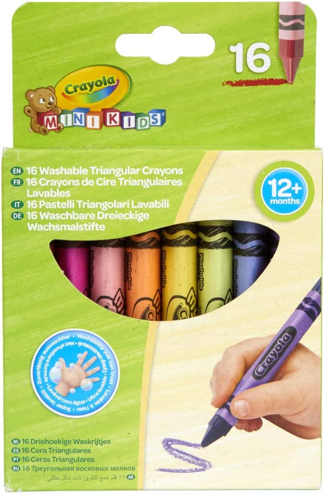 Crayola - 16 db tömzsi háromszög zsírkréta. A csomagban 16 db háromszögletű, kifejezetten a kis kezekre tervezett, tömzsi marokkréta található. Folyamatosan fog, nem morzsolódik, élénk színű. Lemosható.