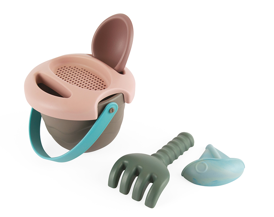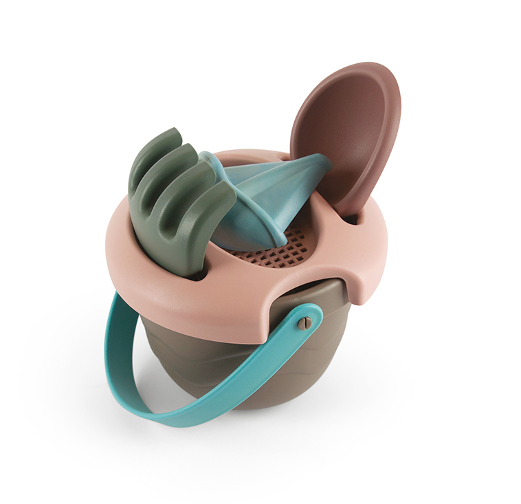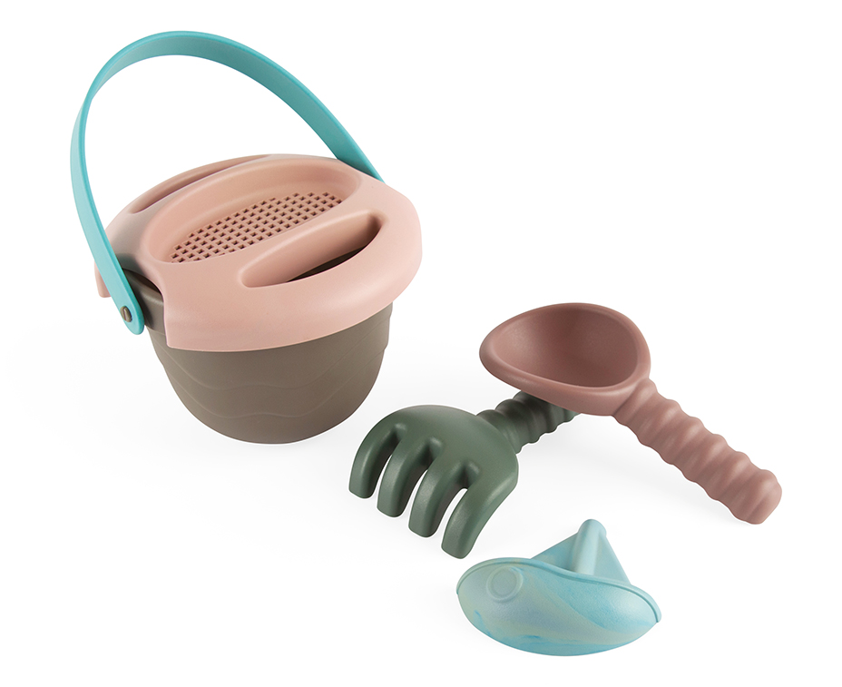 Tartalma: 1 db vödör, 1 db vödör tető, mely szita is egyben, 1 db gereblye, 1 db lapát, 1 db vitorláshajó homokozó forma