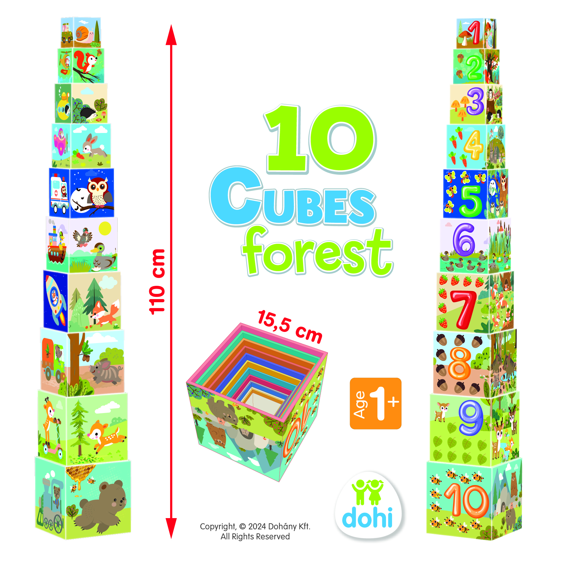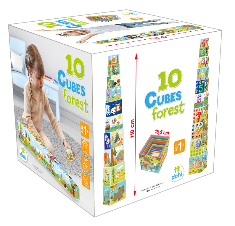 Tudod, hogy milyen állatok laknak az erdőben? És azt tudod, hogy milyen növényekkel találkozhatsz az erdőben? A számokat ismered? Ez a 10 kockából álló, erdőhöz kapcsolódó motívumokkal díszített készlet remek szórakozást ígér a gyerekeknek a kérdések kiderítésére.