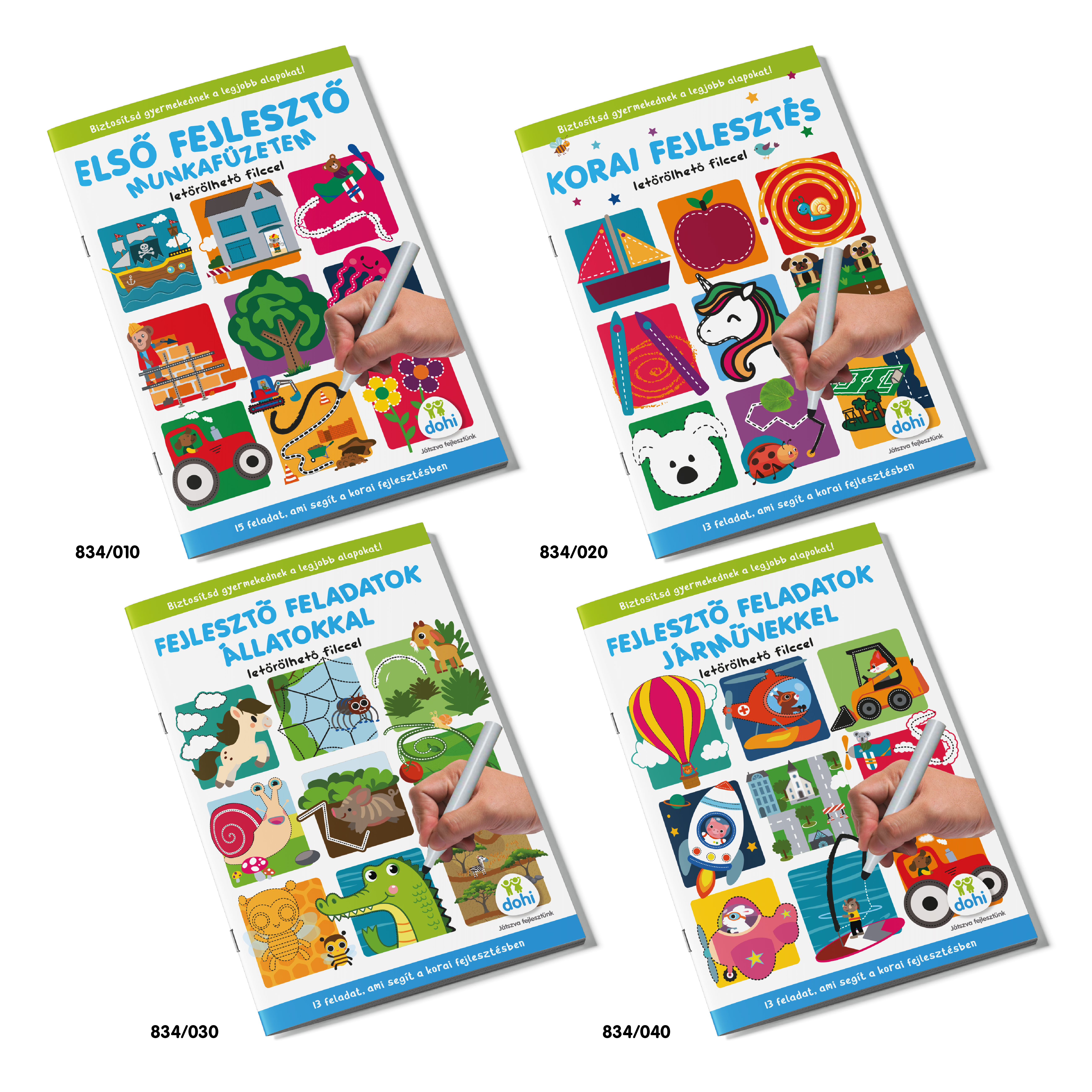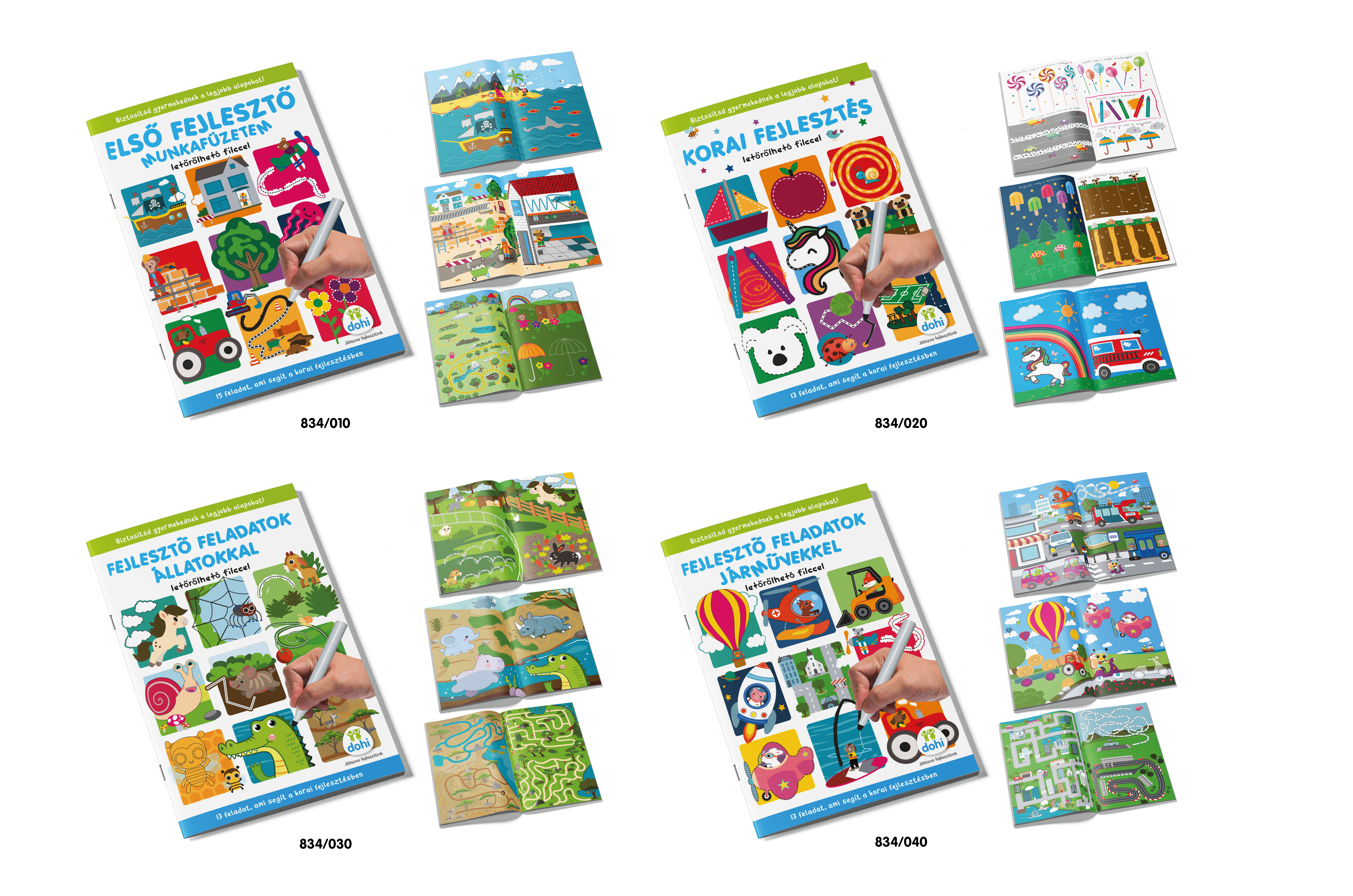 A füzetek szórakoztató módon, játékos feladatokkal segítik a gyermekek fejlődését, folyamatosan fejlesztik a vonalvezetést, alakformálást, színezést és a logikai gondolkodást. A színes illusztrációk és a könnyen követhető feladatok biztosítják, hogy a kicsik aktívan részt vegyenek a játékban, és közben tanuljanak is. Ezen kívül fontos szerepet játszanak az íráselőkészítésben, elősegítve a finommotorika és a kreativitás fejlődését.