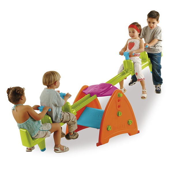A vidám színű, erős mérleghinta négyszemélyes, mindkét oldalára 2-2 gyermek tud felülni.