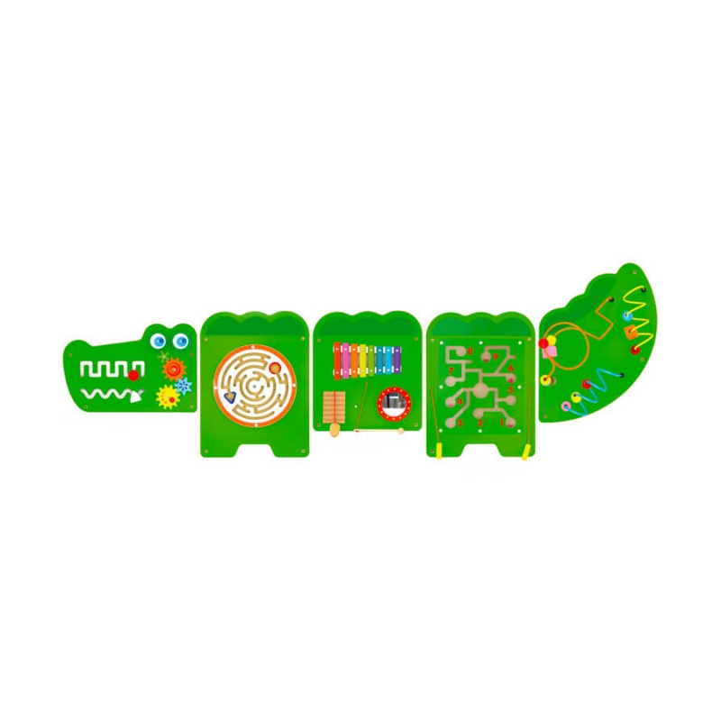 Az óriási krokodilos falon rengeteg mozgatható, forgatható, hangot adó vagy kitapogatható játékelem található. A kis totyogósok felfedezhetik és tapasztalati úton tanulhatják meg az egyes játékok használatát és a szabályszerűségeket.