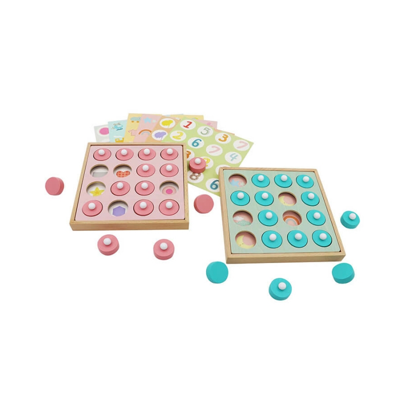 Klasszikus memóriajáték fa táblán, melyhez 16 db fogantyús korong és 6 db feladatlap tartozik. A gyerekek szeretnek egymással versenyezni, így a memóriajátékban is igyekeznek minél több párt összegyűjteni.