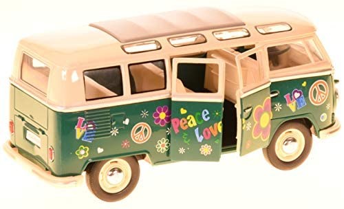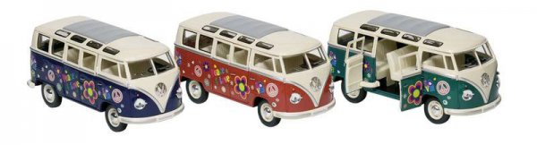 Fém modell busz, nyitható ajtókkal, szabadon guruló kerekekkel.