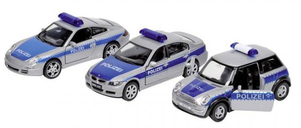 Fém modell autó, nyitható ajtókkal, szabadon guruló kerekekkel.