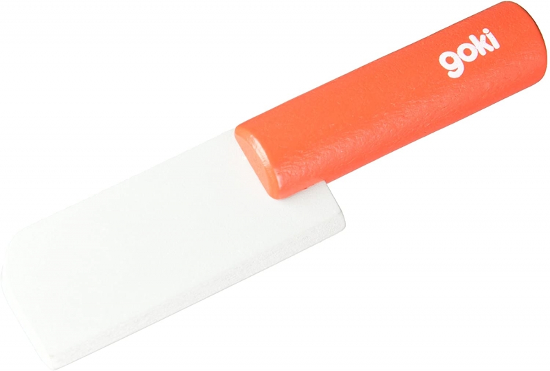 A gyümölcsök darabjai tépőzárral vannak egymáshoz rögzítve, ezt kell a fa kis kés segítségével elvágni a gyermeknek.