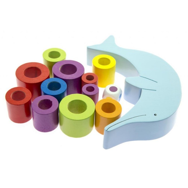 Tartalma: 18 db színes gyűrű, 1 db színes dobókocka, - 1 db billegő delfin figura