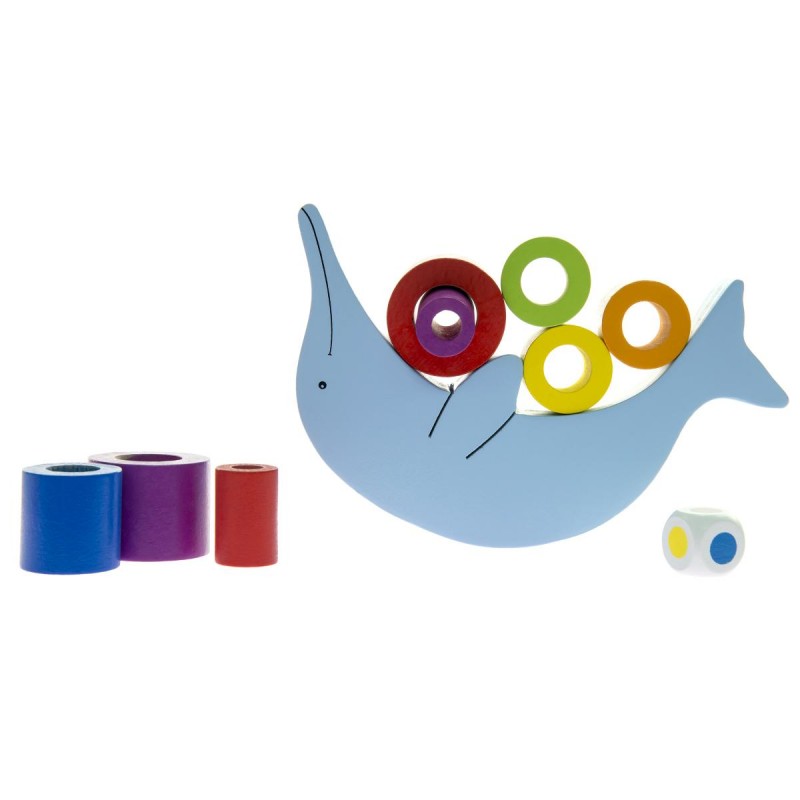Delfines egyensúlyozó, ügyességi játék egyedüli játékhoz, vagy társasjátékként max. 3 játékos számára. A játék célja az összes színes gyűrűt a delfin hasára felrakni (a színdobókockával dobva lehet meghatározni, melyik elem a következő) anélkül, hogy a gyűrűk leesnének.