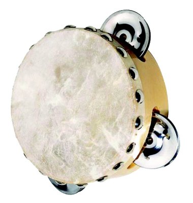 Valódi bőrből készült tamburin, fa keretben, 3 csengővel.