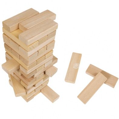 Építsétek fel a tornyot, majd a játékosok felváltva kihúznak egy-egy hasábot és elhelyezik a torony tetejére úgy, hogy az ne dőljön össze.