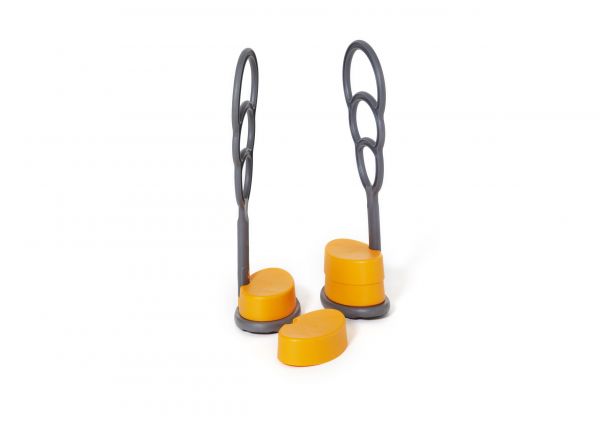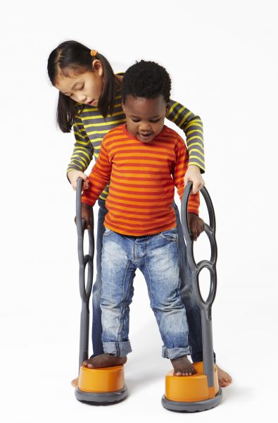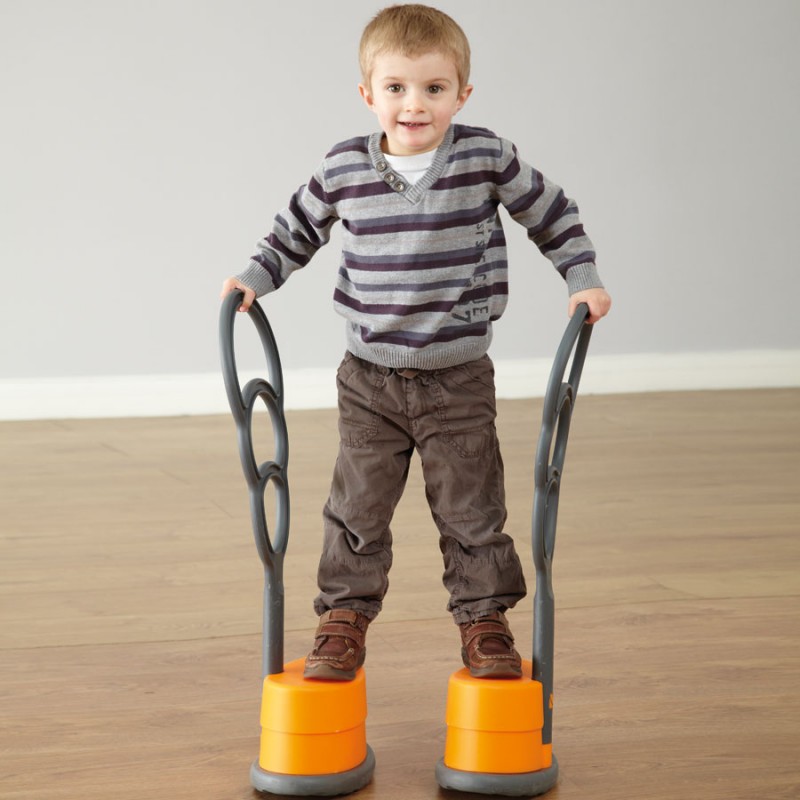 Egyedi gólyalábak, speciálisan a kisebb gyermekek számára kifejlesztve! A kemény műanyag fogantyú segítségével a gyermek biztonságos fogást találhat magának a magasságához mérten. A gólyaláb magasságát szabályozni lehet (3-15 cm között). A magasító korongokat egyszerűen lehet cserélni és eltávolítani!