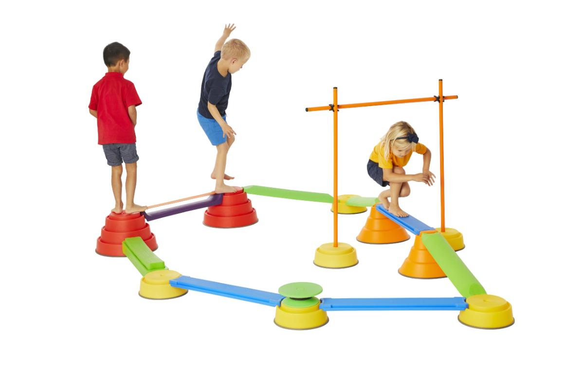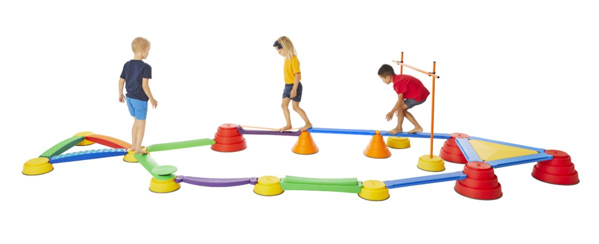 AKADÁLYPÁLYÁK, EGYENSÚLYOZÓ JÁTÉKOK, FEJLESZTŐ ESZKÖZÖK, JÁRÁS, FUTÁS, UGRÁS, EGYENSÚLYOZÁS, FELÜLÉS