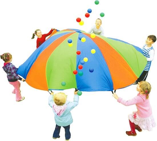 Több gyermek közös tevékenységének összehangoltnak kell lenni ahhoz, hogy a komplex mozgás eredményeként magasba emelkedjen az ejtőernyő.