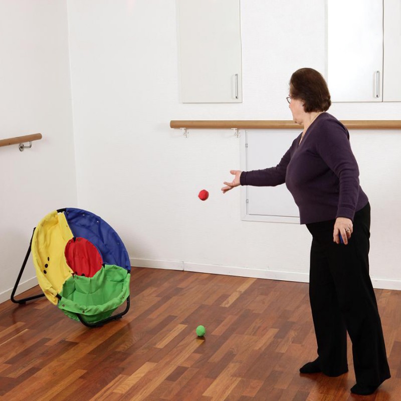 A készlet tartalma: 1 db állványos céltábla és 6 db puha labda.