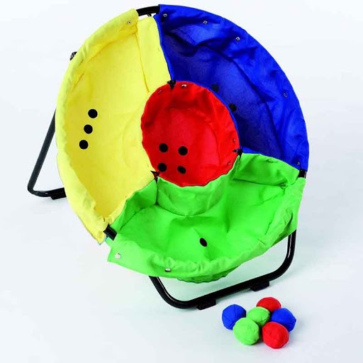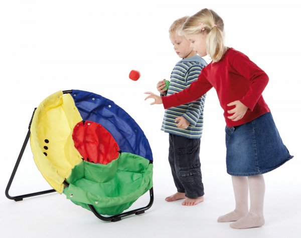 A Gonge célbadobó játéka 4 db textil rekeszből áll, amelyek egy strapabíró fém kerethez vannak rögzítve.