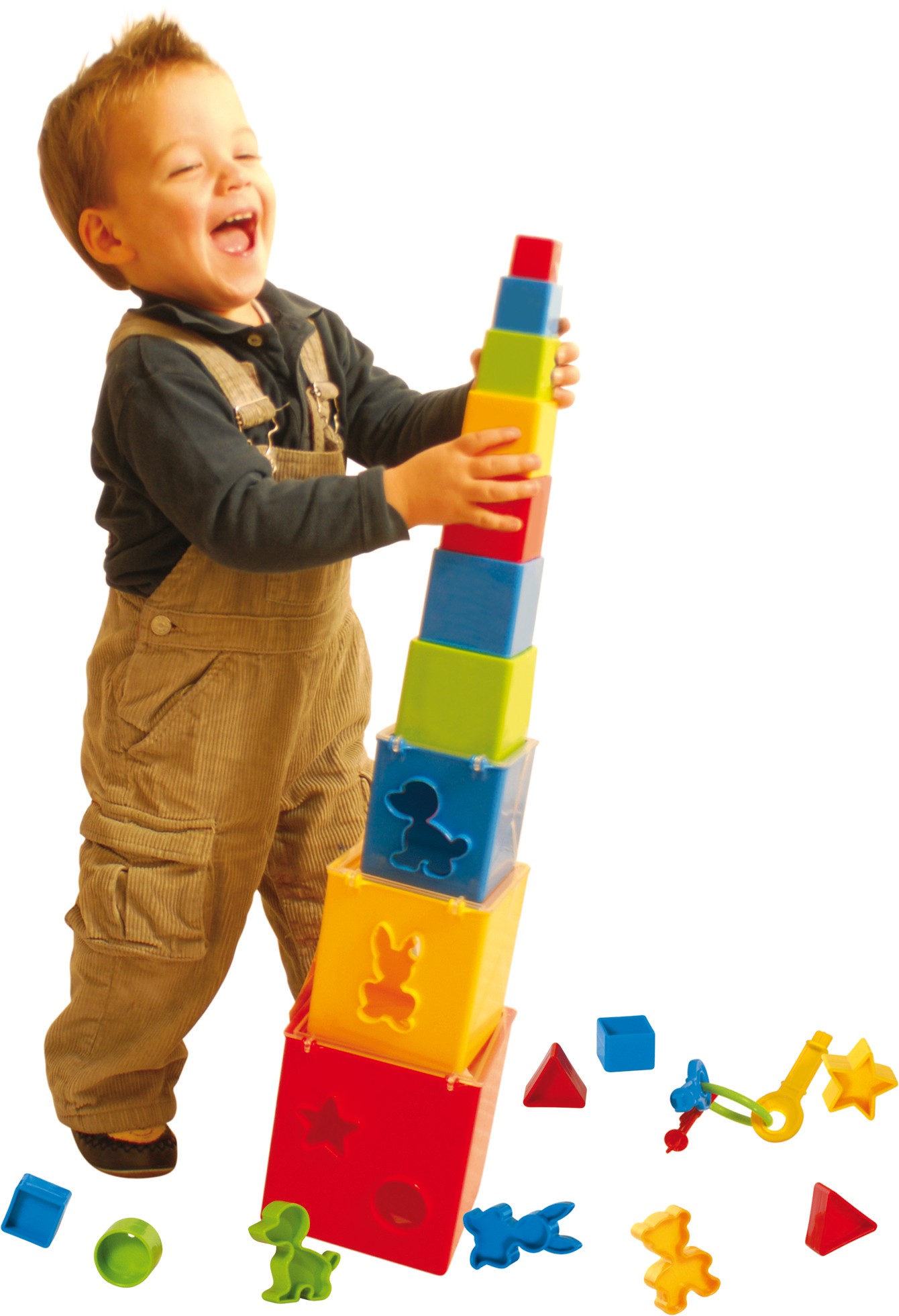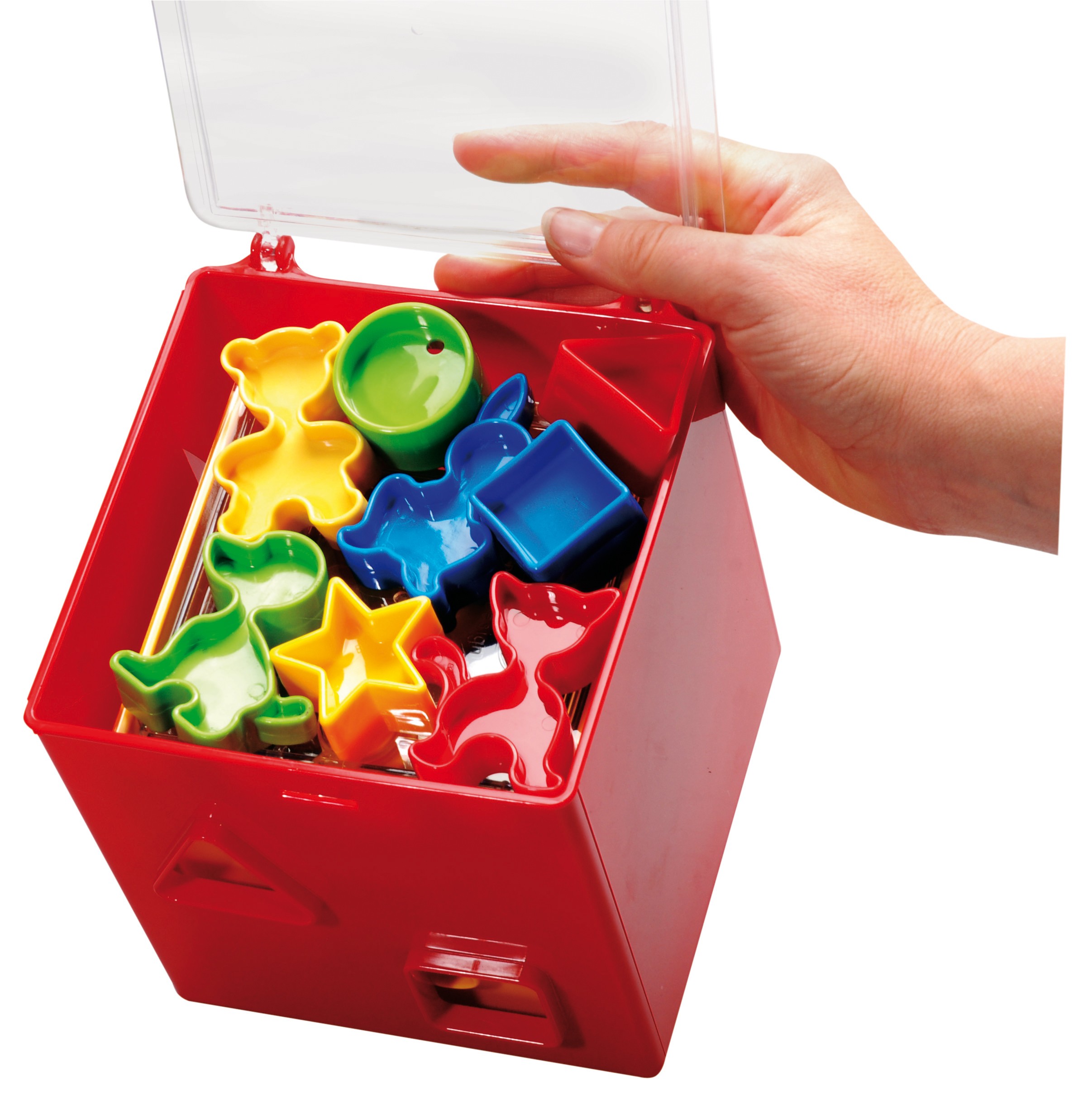Rendezhetik a különböző formákat a három dobozba, majd egymásba rakják a dobozokat. Tökéletes apró kincsek tárolásához, valamint a koordináció és a megfigyelés fejlesztésére.