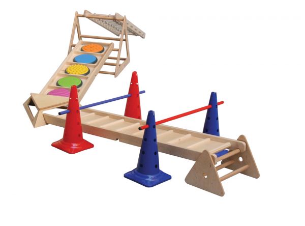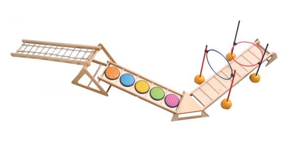 A RillaGym tömör bükkfából készült, strapabíró, többfunkciós mozgásfejlesztő készlet, amely különböző koordinációs képességek fejlesztésére alkalmas.