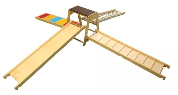 Rendkívüli lehetőséget kínál a fejlesztésben kulcsfontosságú differenciálásra is, azáltal, hogy a változó szélességű elemeket akár különböző magasságokban (a széleken és középen elhelyezkedő „bemarások” segítségével), vagy éppen korláttal is összeépíthetjük. Így akár egyszerre, egymás felett több szinten is folyhat a gyakorlás a térben. Azáltal, hogy az elemek a bordásfalra is csatlakoztathatók, és hogy rudakkal, karikákkal, bójákkal, érzékelő korongokkal is egybeépíthetőek, tovább bővül a variációs lehetőségek és a fejleszthető területek száma (pl. taktilis érzékelés).