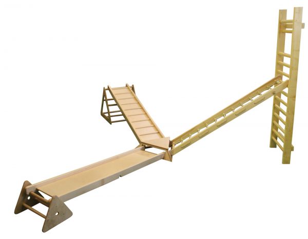 A RillaGym tömör bükkfából készült, strapabíró, többfunkciós mozgásfejlesztő készlet, amely különböző koordinációs képességek fejlesztésére alkalmas.