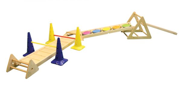 A RillaGym tömör bükkfából készült, strapabíró, többfunkciós mozgásfejlesztő készlet, amely különböző koordinációs képességek fejlesztésére alkalmas.