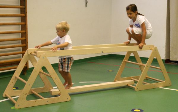 A RillaGym tömör bükkfából készült, strapabíró, többfunkciós mozgásfejlesztő készlet, amely különböző koordinációs képességek fejlesztésére alkalmas.